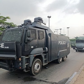 operative at Freedom Park, Ojota, Lagos this morning to prevent any gathering or